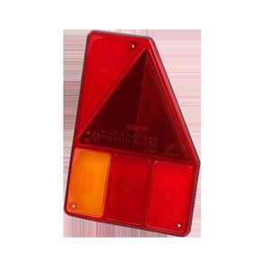 Diese Rückleuchte überzeugt durch ihre klare Funktionalität: Blinker, Bremslicht und Schlusslicht sind integriert und sorgen für optimale Sicherheit am Fahrzeugheck. Der Dreieckrückstrahler erhöht die Sichtbarkeit im Straßenverkehr. Die vertikale Montageposition und die kompakten Maße von 256 mm (Höhe), 179 mm (Breite) und 84 mm (Tiefe) machen sie vielseitig einsetzbar. Mit dem 5-poligen Bajonettanschluss ist sie zudem schnell und sicher installiert.